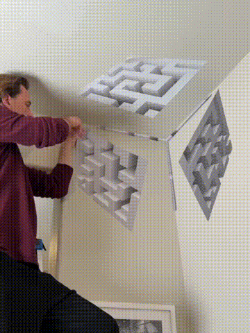 Modern Geometric Corner Wall Art are illusion-based wall installations that make space behave... strangely. As you move, a floating object appears to twist and shift in impossible ways - revealing the hidden mechanics of perception itself.